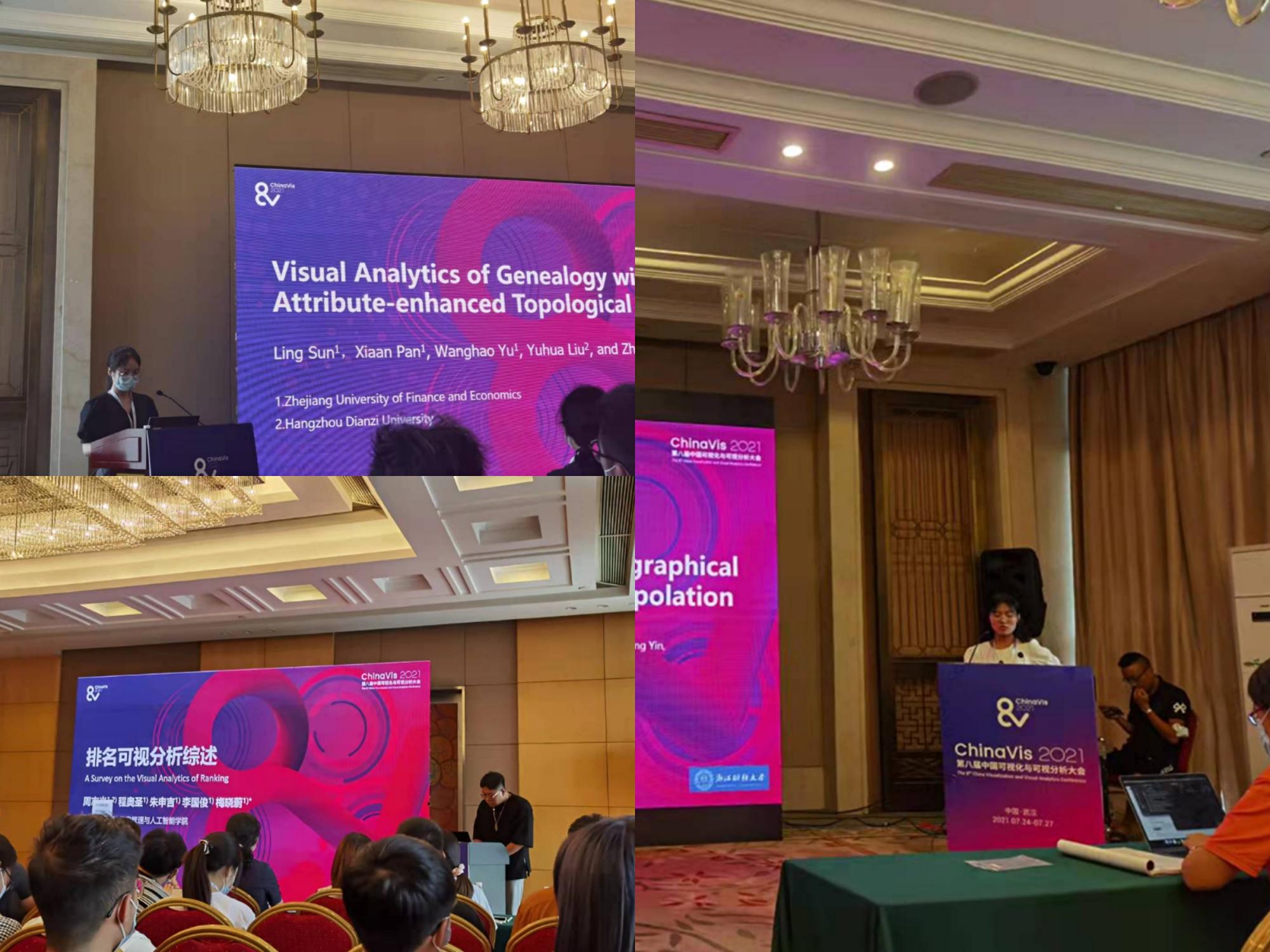 我院教师陈伟锋、张翔、涂乐及研究生程奥圣、孙玲、郑凤玲等应邀参会。会上,我院研究生程奥圣、孙玲、郑凤玲分别以排名可视分析综述、Visual Analytics of Genealogy with Attribute-enhanced Topological Clustering、Visual Abstraction of Large-scale Geographical Point Data with Credible Spatial Interpolation等为主题做会议报告。