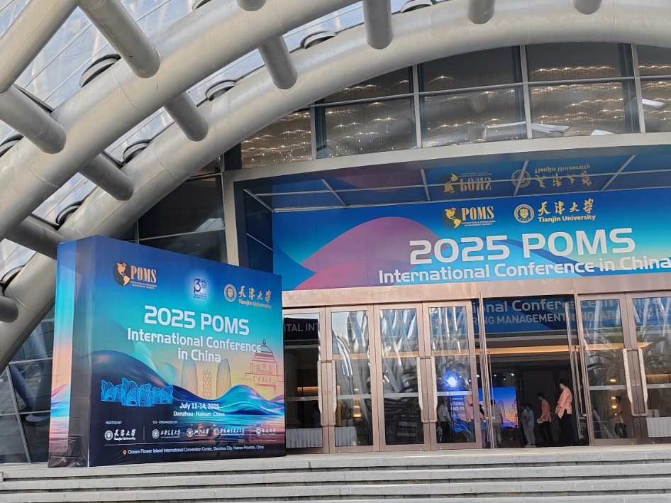 7月13日,我院23级管理科学与工程专业研究生陆志钰前往海南参加2025年中国生产与运营管理(POMS)国际会议(2025 POMS International Conference in China)。会议于7月11日-14日在海南省儋州市举行,主题为“数智化运营赋能管理创新与变革”,由天津大学主办,浙江大学、中国科学技术大学、西安交通大学协办,海南大学特别支持。本次会议共设有24个分会场与192个分论坛,来自国内外的1400余名专家学者通过专题报告、前沿成果展示与企业参访等多形式互动,围绕不同研究前沿与热点话题展开深入讨论。