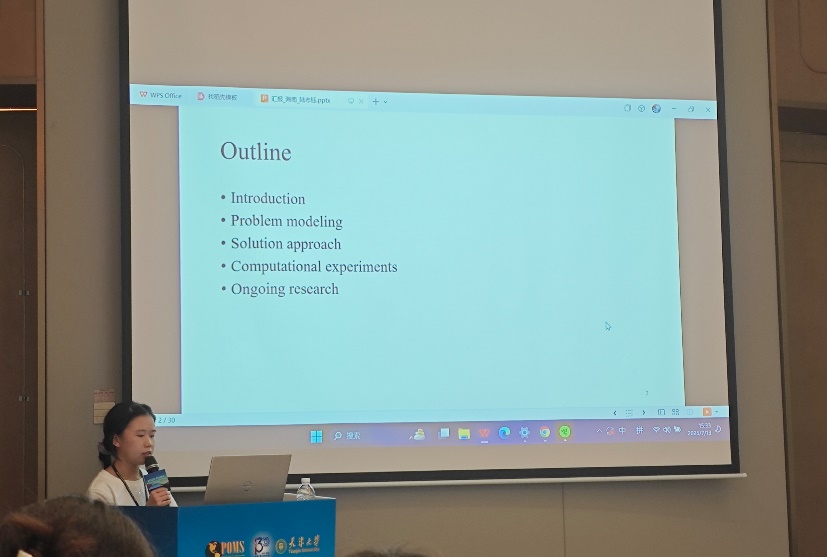 我院研究生陆志钰同学不仅积极参与会议多个专题论坛的学习,深入了解了运营管理领域的前沿研究动态与智慧产业发展的最新应用趋势;还在分论坛“智能供应链与智慧物流”中进行了学术汇报交流,作了“Optimizing Highway Emergency Vehicle Deployment and Dispatching: A Logic-Based Benders Decomposition Approach”的主题汇报,并与相关专家进行交流与互动,为今后的科研工作奠定了坚实基础,展现了我院良好的学术风貌。