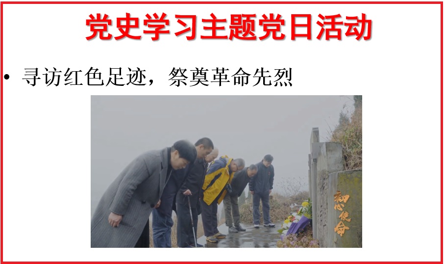 5月18日,信智学院教工第一党支部在9506召开了“礼赞百年心向党”党史学习主题党日活动。会议由支部书记朱凌主持,支部党员老师参会学习。