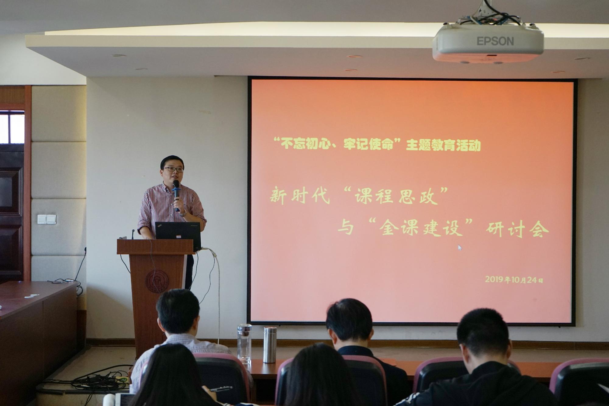 首先由信工学院党委副书记陆颋浩致辞,介绍了我院在课程思政和“金课”建设方面的总体情况和所取得的阶段性成果。他表示学院将围绕“立德树人”这一中心任务,将课程与思政无缝衔接、巧妙融合,通过教师的“传道、授业、解惑”,达到丰富课堂内容、活跃课堂气氛、提高人才培养质量的目标。