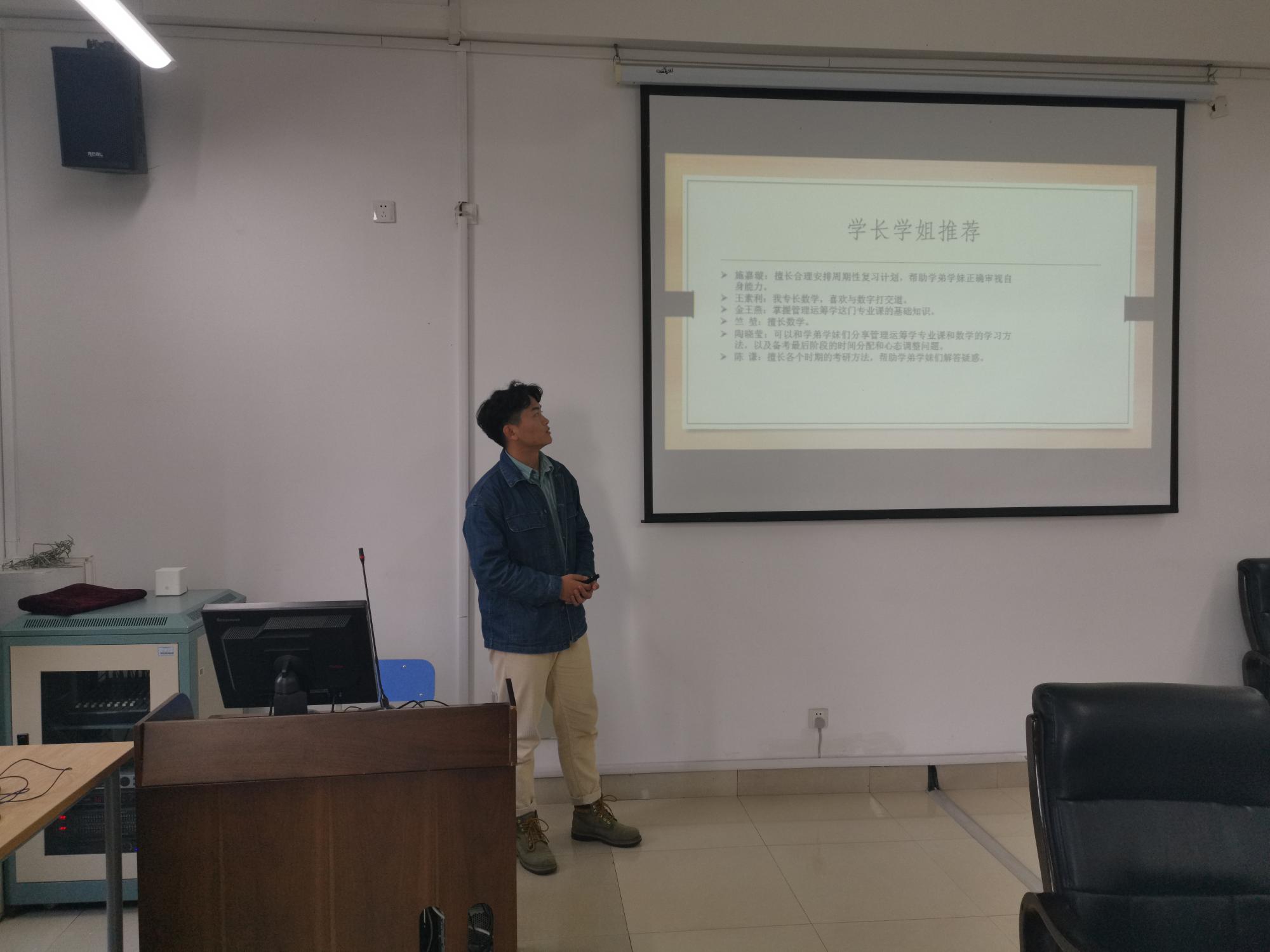 随后,我院两位优秀的在读硕士研究生陈谦与陈洁,向大家分享了他们的考研经验。在对近年来考研难度和热度的分析后,他们详细介绍了关于数学与英语的高效的学习方法,并推荐了考研阶段中所需要的书籍。