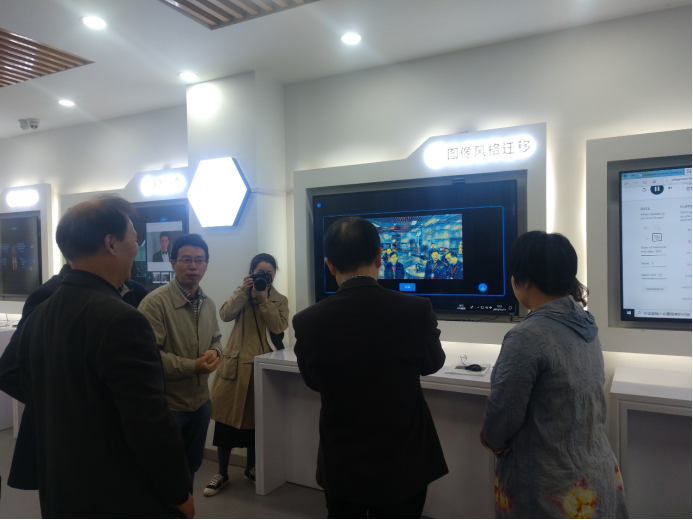我院计算机系系主任刘亚楠副教授向各位专家介绍人工智能体验园的组成情况,在机器感知区域,介绍了语音识别与合成、人脸融合与图像风格迁移等计算机视觉与自然语言处理的相关技术。