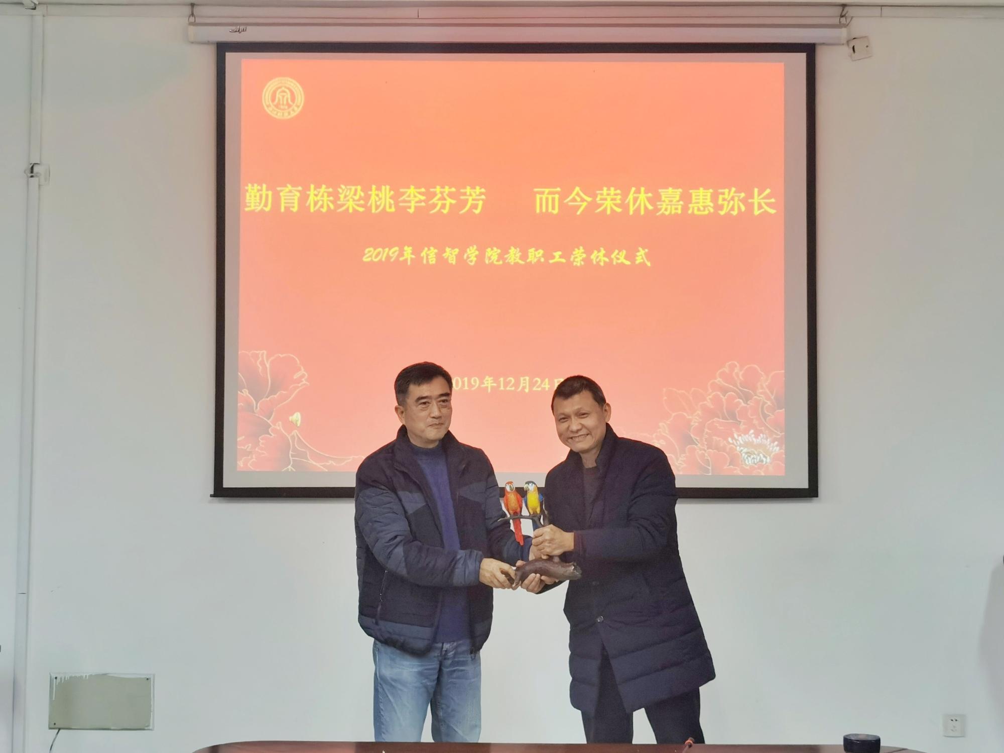 12月24日,信息管理与人工智能学院在404会议室为王衍、冯睿两位老师举办“勤育栋梁桃李芬芳,而今荣休嘉惠弥长”荣休仪式。信智学院院长张文宇,副院长张帅,学院各系部主任、各党支部书记共同出席参与,荣休仪式由学院党委副书记陆颋浩主持。