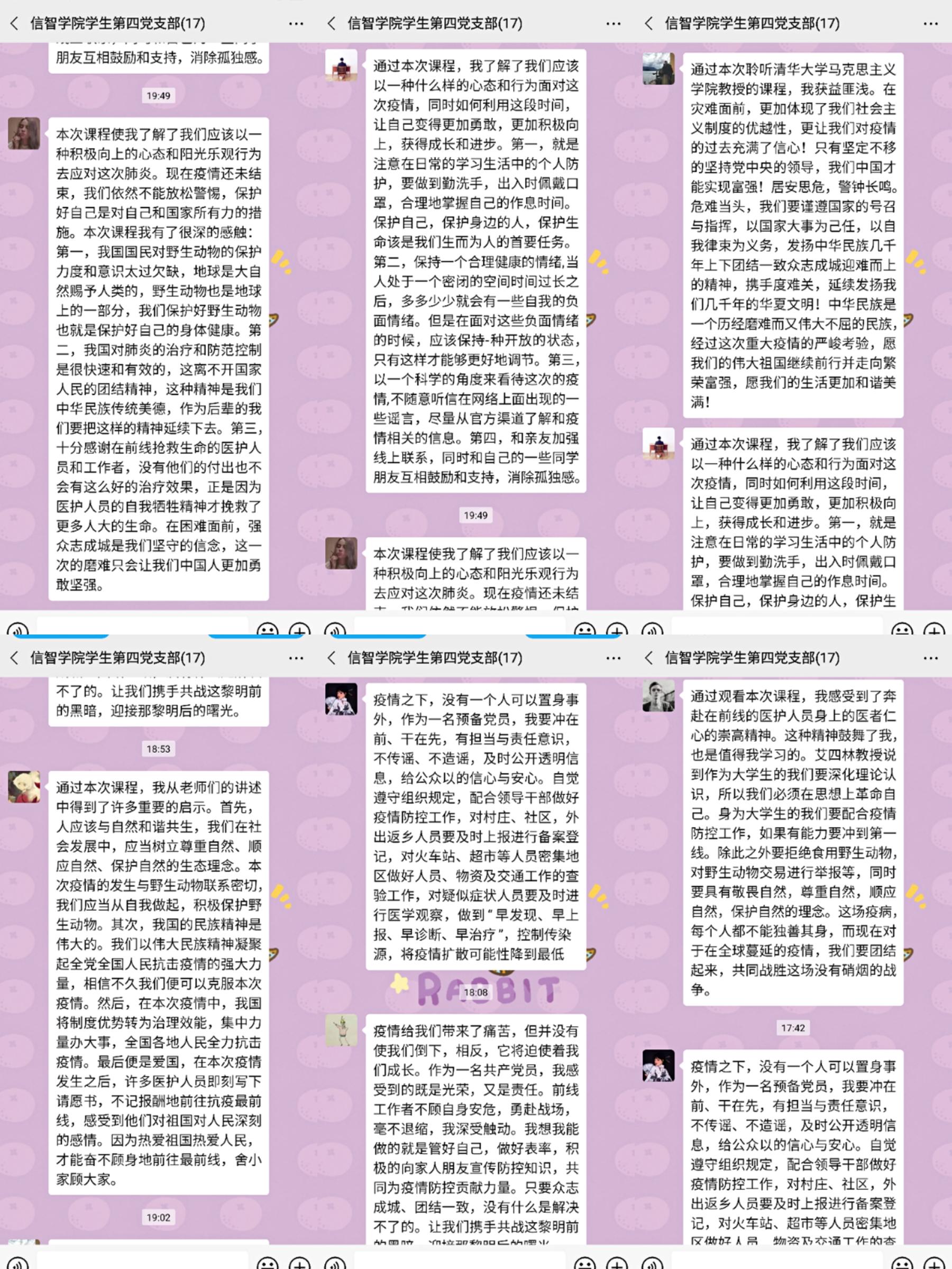 3月9日,教育部“全国大学生同上一堂疫情防控思政大课”正式开课。这节线上思政课正是在疫情防控的关键时刻,为更好引导广大学生增强“四个意识”、坚定“四个自信”、做到“两个维护”,坚定在以习近平同志为核心的党中央的坚强领导下打赢这场疫情防控阻击战的信心和决心,深刻认识中国抗疫所彰显的中国共产党领导和中国特色社会主义制度的显著优势。根据学校党委统一安排部署,信智学院党委迅速反应,广泛动员,精心组织,掀起了一股学习、交流、讨论思政大课的热潮