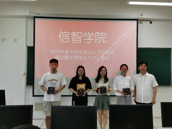 会议最后,张帅院长和陈远高副院长为9位优秀拔尖人才代表颁发了奖品,感谢他们在2019年度为信智学院本科生拔尖人才项目做出的贡献。