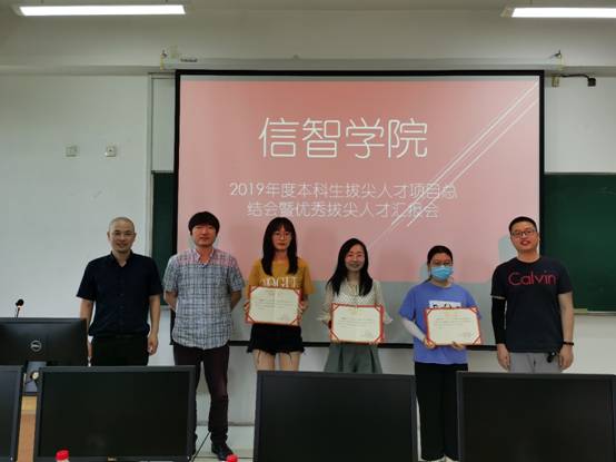 然后,周志光、杨水清和姜辉等导师为三位毕业班的拔尖人才授予了“信智学院本科生拔尖人才”荣誉证书,以肯定和鼓励她们在2018和2019年度取得的丰硕成果。