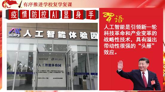 在“有序推进学校复学复课”的主题中,朱凌讲述了人工智能机器人和相关技术投身疫情阻击战中发挥的重要作用,以及我校人工智能技术助力学校复学复课的典型案例。