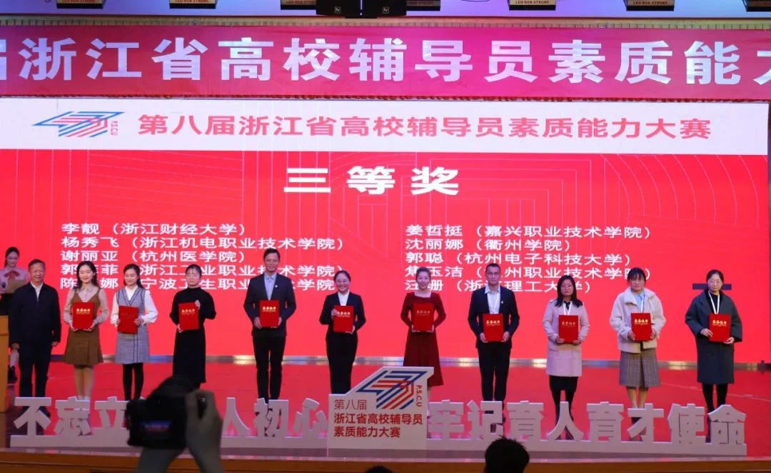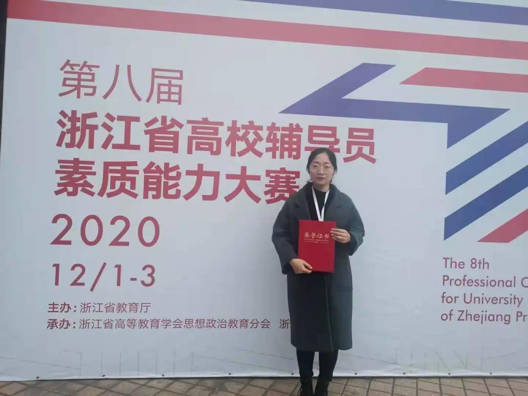 2020年12月1日—3日,“第八届浙江省高校辅导员素质能力大赛”在浙江师范大学举行。全省88所高校的106位辅导员同场竞技、尽展风华,共决出一等奖10名,二等奖10名,三等奖20名。我院辅导员李靓以优异的成绩获得三等奖,这也是近年来我校在该赛事中获得的最好成绩。