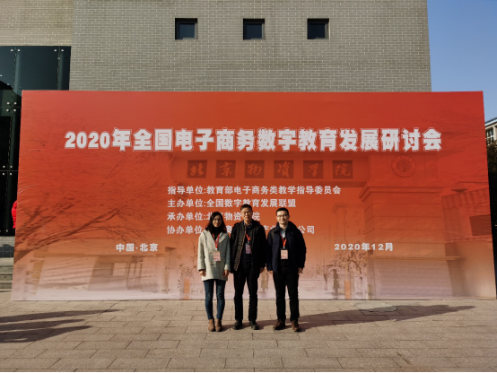由教育部高等学校电子商务类专业教学指导委员会和全国电子商务数字教育发展联盟主办的2020年全国电子商务数字教育发展研讨会,于12月11日在北京物资学院顺利召开。研讨会以“新文科建设与电子商务数字教育创新发展”为主题,旨在深入探讨数字经济时代电子商务数字教育创新发展,进一步激励优秀数字教育实践,促进数字资源协同共享,产学研深度融合。我院姚建荣、陈远高、周莎莎老师参加了本次研讨会,其中陈远高老师在会上进行了报告分享。