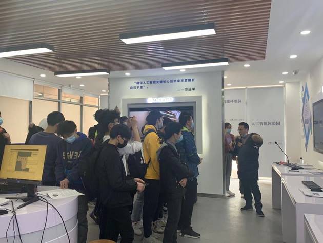2021年1月14日,浙江理工大学机械与自动控制学院2019级智能制造工程专业的同学在李浩然老师的带领下参观我校人工智能体验园,人工智能与管理工程实验教学中心主任章华接待来访一行。
