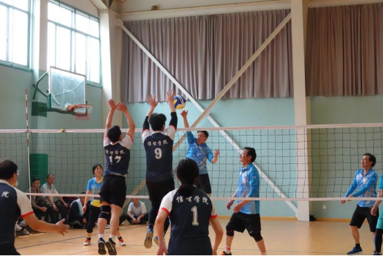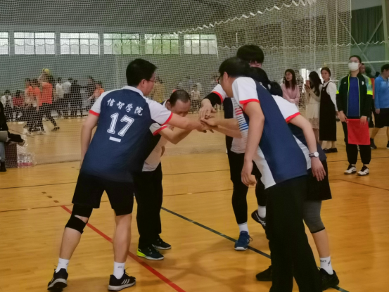 此次比赛,队员们充分展现出优秀的团结协作、认真拼搏、只要球不落地,就永不放弃的排球精神。一阶段比赛,我院就遇到上届比赛的冠军队伍外语学院,一开局便连输7分,在如此不利的局面和压力下,我院队员认真分析失误和战术,互相鼓励沉着应对,最后反超对方夺得小组第一。