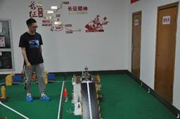 比赛场地模拟红军长征路线,由同学们以团队形式根据“长征”线路设计程序代码植入机器人后,机器人从“瑞金”出发,一路历经“血战湘江”、“遵义会议”、“四渡赤水”、“巧渡金沙江”、“强渡大渡河”、“飞夺泸定桥”、“爬雪山”、“过草地”等重重考验,最终抵达“延安”。正如长征路途的艰难险阻,本次比赛也存在让机器人按照线路精准爬坡、绕圈、调头等难题需要解决,任何环节的出错,都可能导致“功亏一篑”,比赛中,选手们克难攻坚,最终“延安”会师。
