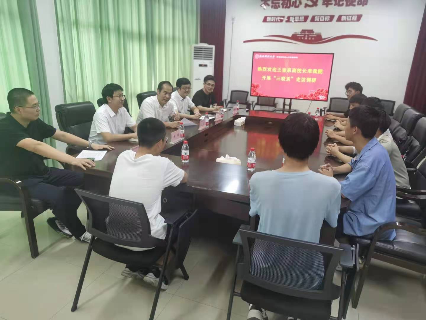 9月9日下午,王奎泉副校长专程来到信智学院,走访我院“三联系”学生。学院党委书记徐奇伟、学院党委副书记田聪、党校办秘书高灵、学院学生第二党支部书记洪宝华等陪同走访。
