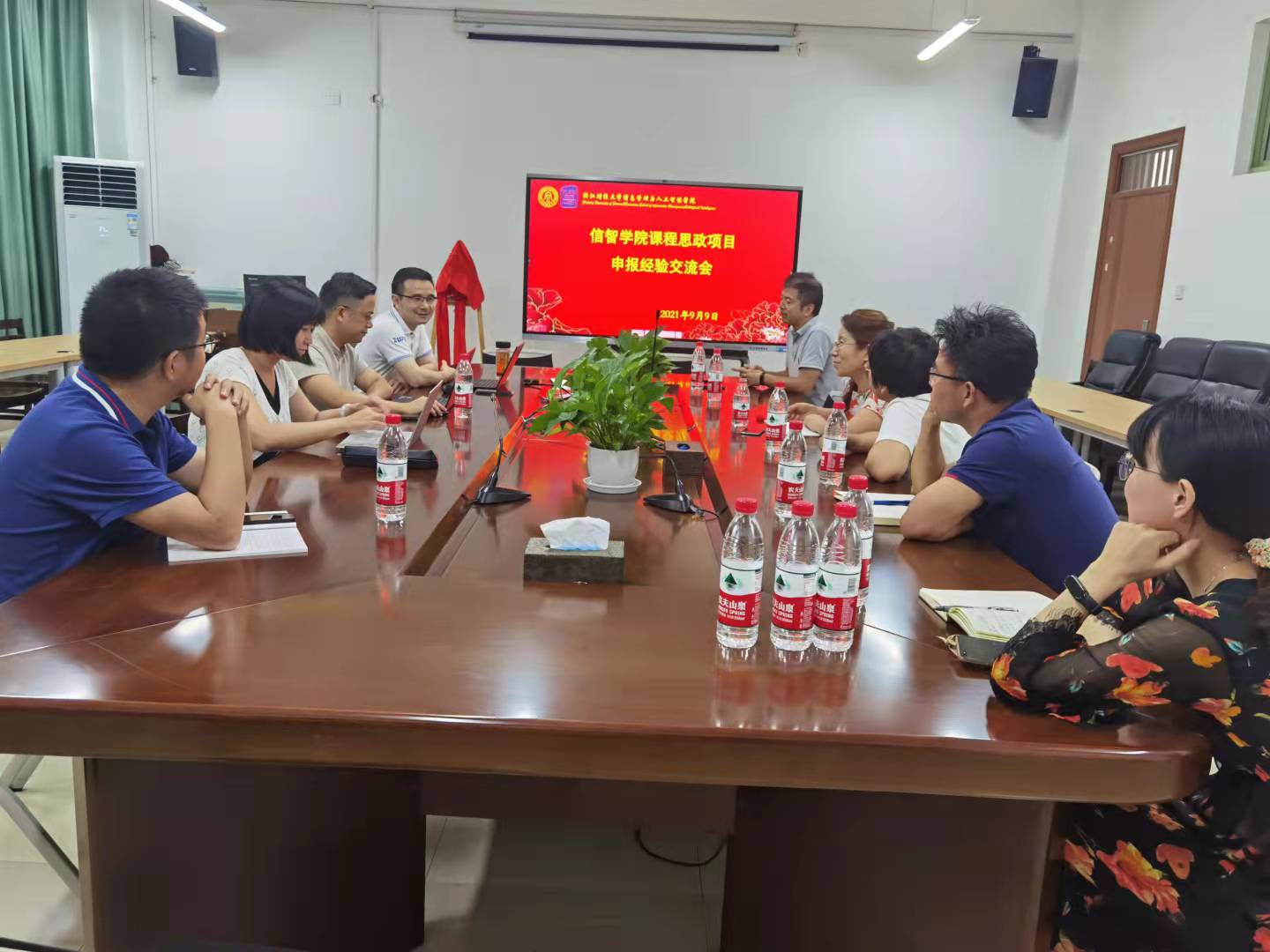 为落实立德树人根本任务,强化师德师风建设,进一步提高教师的思想政治意识和德育能力,增强教书育人的责任和担当,构建全员、全程、全方位的“三全育人”格局,打造好课堂教学这个主渠道,推进课程育人,实现思想政治教育与知识体系教育的有机统一。信智学院于9月9日下午13:40在9-404会议室召开课程思政经验交流会,会议邀请了2021年成功申报省级课程思政项目的陈明晶老师和林剑老师做经验交流与分享,教学院长陈远高主持会议,我院青年教师参加了此次会议。