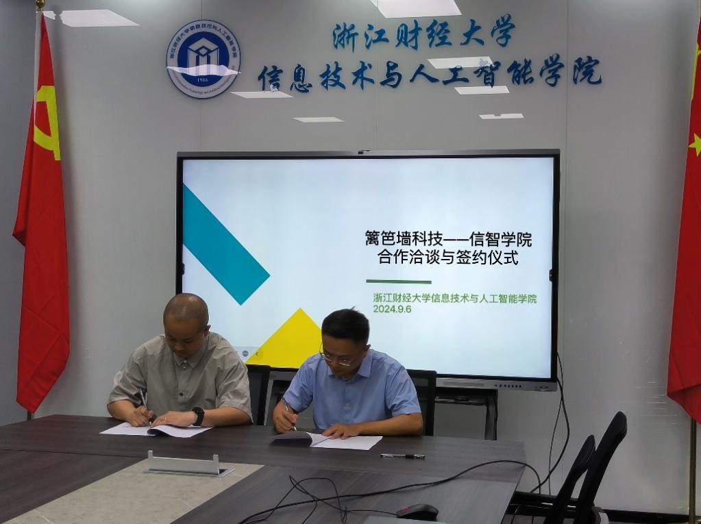 9月6日,伟德国际bevictor1946与篱笆墙科技集团有限公司战略合作签约仪式在学院楼404会议室成功举行。篱笆墙科技集团有限公司副总裁叶凯强、伟德国际bevictor1946副院长林剑等代表出席签约仪式。