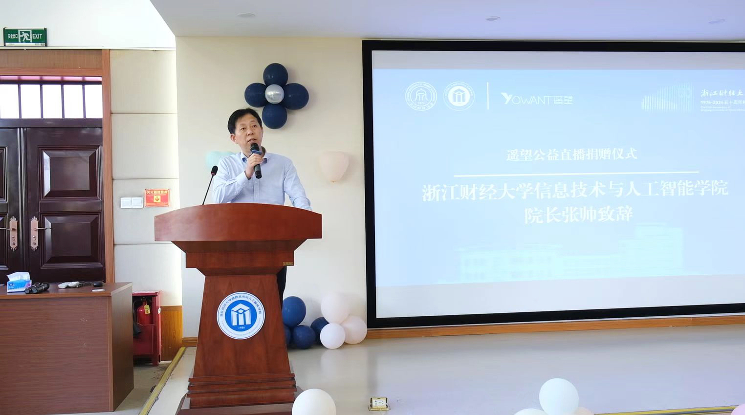 下午 13:30,遥望公益直播捐赠仪式在9302举行,杭州遥望网络科技有限公司公关营销总监汪晨、伟德国际bevictor1946院长张帅、党委书记吴翼泽、党委副书记吴轶韵、办公室主任徐吉锋及师生代表出席仪式。