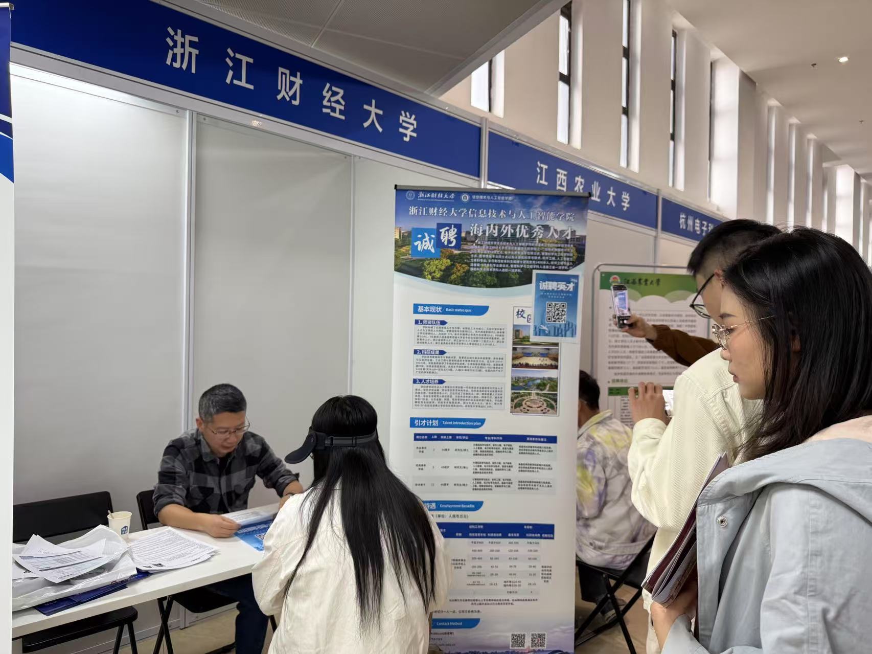 学院深入贯彻落实“一院一策”改革部署,以“走出去”战略为抓手持续深化人才强院工程。近日,信智学院作为财大招聘单位代表,亮相中国教育在线主办的“博聚英才”浙江大学2025届毕业生高校专场双选会,聚焦人工智能、软件工程、计算机技术、金融科技等多个前沿领域,面向海内外定向招募博士及以上高端人才。