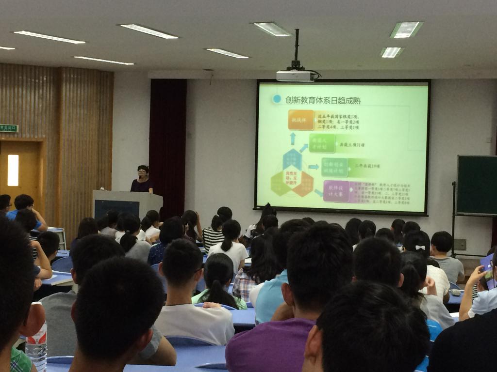 2015年9月8日上午,在2015级新生开学报到之际,为了让信息学院2015级新生更好的了解学院的人才培养模式、专业设置以及各专业学分和培养方案的相关情况,激发专业学习兴趣,引导新生更好地规划自己的学业,信息学院召开了2015级新生专业教育会。会议由信息学院分管教学院长马雪英老师主持,15级全体新生参加。