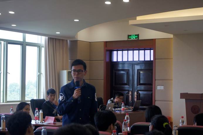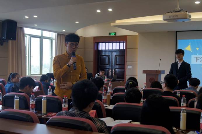 温馨的茶歇时间后,开始了本次交流会的讨论环节,由我院学生会副主席王旭东主持。这个环节是针对具体问题进行交流,王旭东首先抛砖引玉,各代表积极发表自己的看法。抽签回答问题更是将整个交流会气氛带上了高潮,代表们不论是抽到“工作分工不明确”这样严肃的问题,还是抽到“如何保持单身狗的尊严”这样趣味性问题,都一一认真进行了回答。活动的最后,学院2015届毕业生原学生会主席林达学长应邀进行了发言,他分享了他在学生会的经验以及创业经历,并表示他的很多能力都来源于学生会,希望所有人都能坚持初心,为了目标努力奋斗。