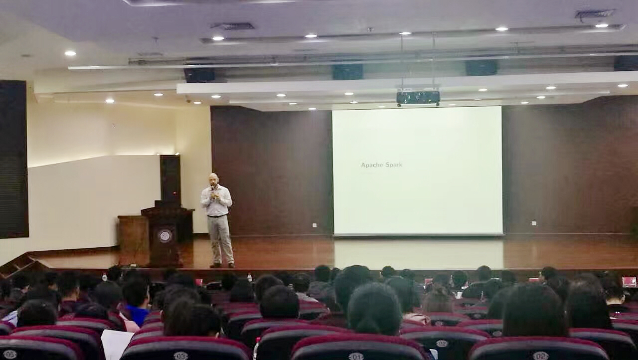 我院客座教授Christoph Schubert博士应邀以“使用Apache Spark在R语言里做大数据分析”为主题在大会上做主旨报告。Christoph Schubert博士首先指出近年来Apache Spark已经演变为一种“大数据操作系统”,目前或今后一段时期内Spark开发的重点是提高可用性和效率。他强调,随着Spark的不断发展和完善,基于Spark利用R语言来处理大型数据集是完全可行的,并通过案例进行了详细阐述。此外,上海雅捷信息首席数据科学家谢军、阿里巴巴集团高级技术专家刘应耀、华东师范大学汤银才教授也分别做了精彩的大会主旨报告。