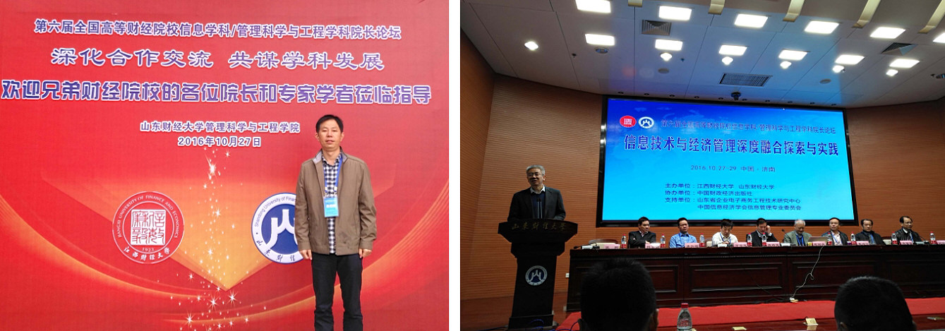 10月30日,第六届全国高等财经院校信息学科和管工学科院长论坛在山东财经大学管理科学与工程学院召开。参加此次论坛的有全国二十多所财经类院校信息学科和管工学科院长、副院长、专业负责人等40多人,我院副院长张帅教授应邀参加了此次论坛。