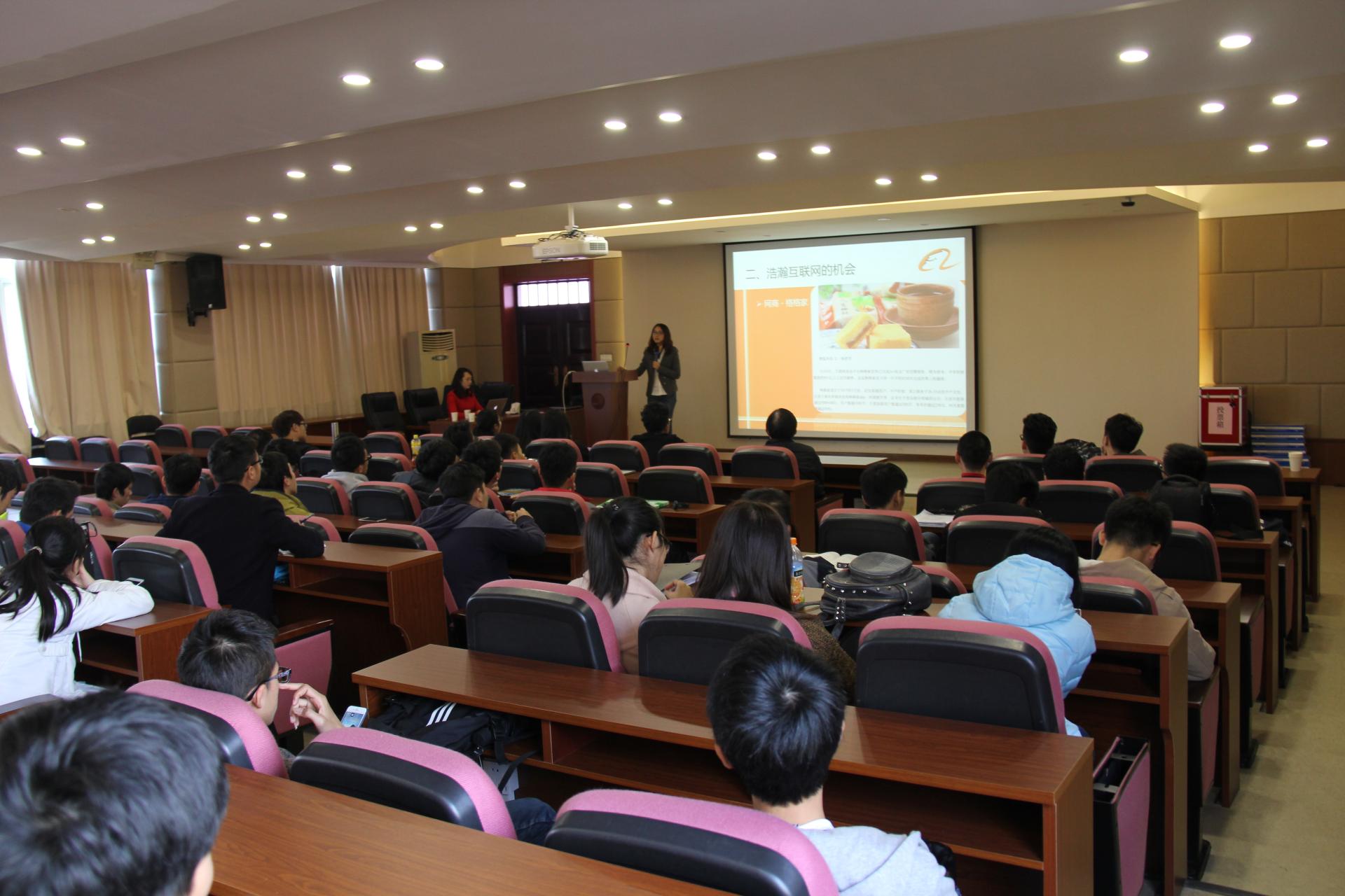 黄小英女士首先从我们所处的时代开始,通过身边的例子使同学们了解到,在互联网时代我们拥有前所未有的机遇。随后黄女士告诉同学们,现在的互联网人才不仅仅需要过硬的技术,更需要乐观的心态、聪明的头脑、皮实的性格以及自省的态度。最后,黄女士向同学们介绍了阿里的创业历程和企业文化,以及阿里在校招中最看重的技术、情商、和性格等方面。