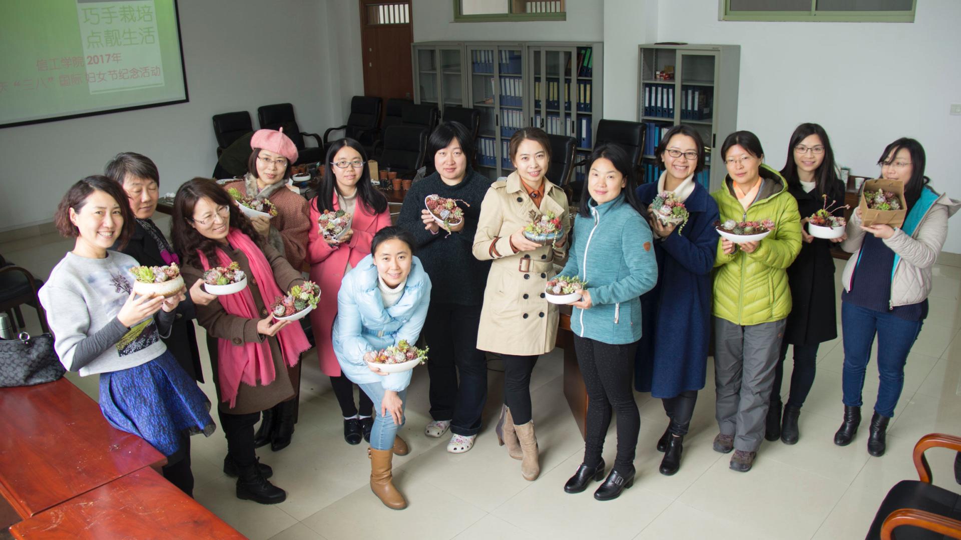 徐徐春风中,我们迎来了一年一度的“三八妇女节”。 为进一步激发我院女教职员工爱岗敬业,锐意进取的工作热情,更好地展现女同胞们健康向上,充满活力的精神面貌,充分发挥“半边天”的智慧和力量,在校行政的大力支持及工会的精心组织下,信工学院开展了主题为“巧手栽培,点靓生活”的多肉种植活动,希望在这个属于世界妇女的节日里,让我们的女神们放松一下、浪漫一下、通过自己的创意尽情地抒发自己的情怀。