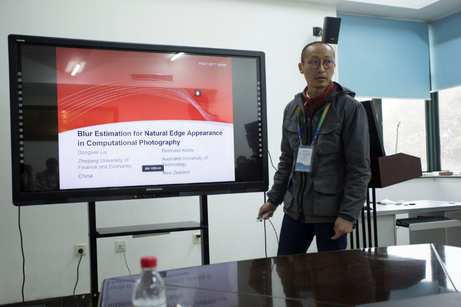 由华中师范大学主办的第八届太平洋地区图像和视频技术研讨会(The Pacific-Rim Symposium on Image and Video Technology)于2017年11月20日-24日在武汉举行。我院教师刘东威参加了此次学术研讨会,并就其论文“Blur Estimation for Natural Edge Appearance in Computational Photography”做口头专题报告。此外,刘东威老师与奥克兰理工大学教授、新西兰皇家科学院院士Reinhard Klette博士在Workshop on Vision meets Graphics上共同完成题为“Stereo Vision for Artistic Photo Rendering”的特邀报告。