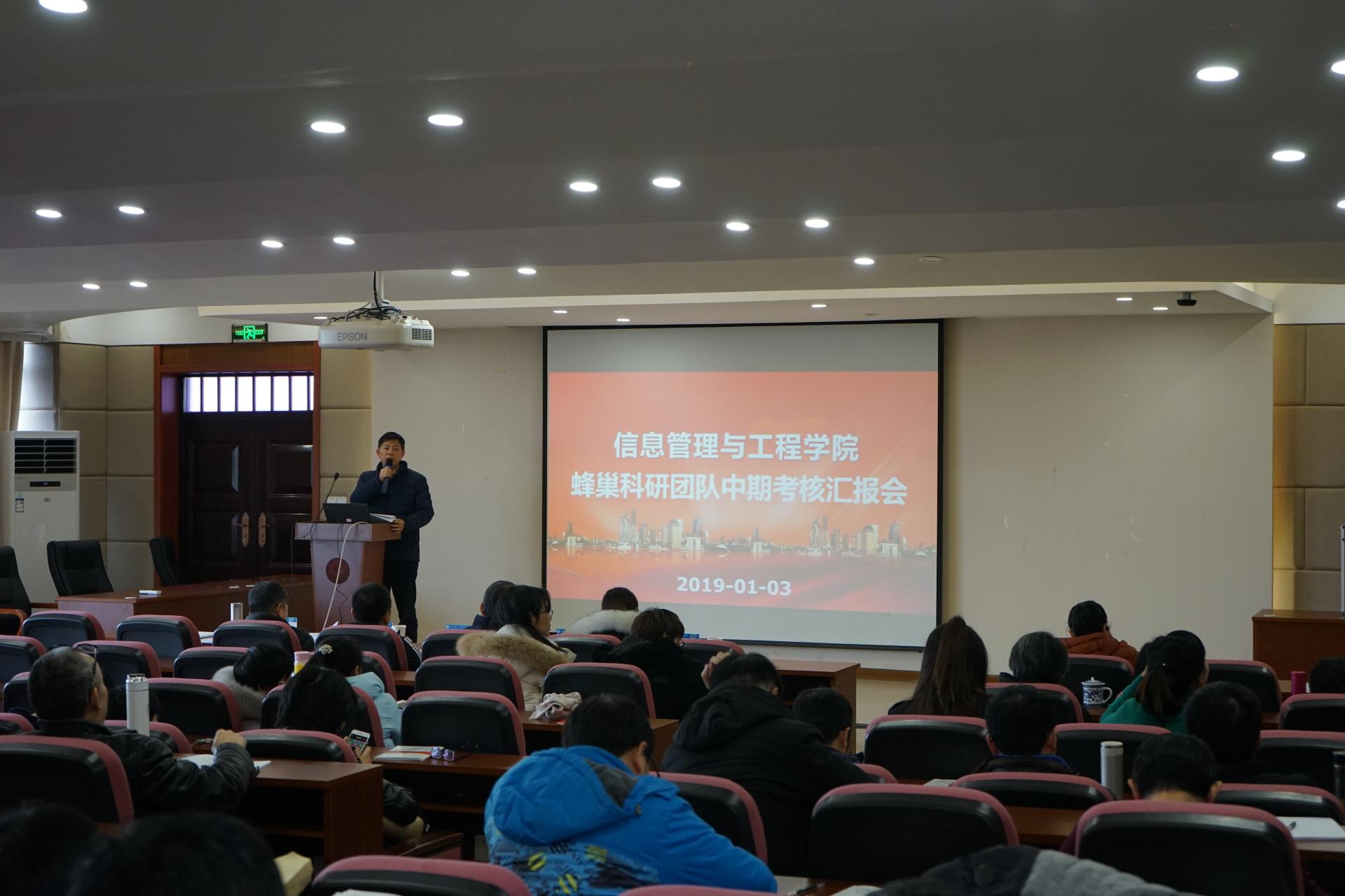 19年1月3日下午,按照学院蜂巢团队建设进度安排,我院组织召开了蜂巢科研团队中期考核评审汇报会,对2017年初立项的6支蜂巢科研团队进行了中期考核。科研处处长金通、我院王衍、张文宇、张帅、彭娟娟等5位老师担任评审专家,学院全体教师观摩了本次中期汇报。