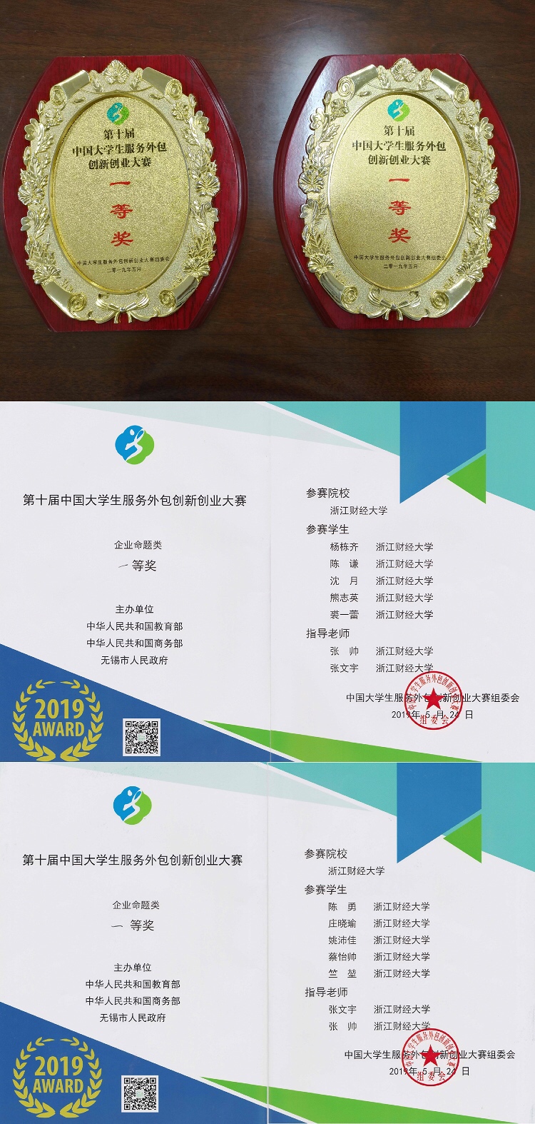 5月22日至5月24日,由教育部、商务部等联合主办的第十届中国大学生服务外包创新创业大赛决赛在江苏无锡举行。经过激烈的初赛和决赛,由我院张文宇和张帅教授指导、18级研究生陈勇和杨栋齐同学分别领衔的两支人工智能与数据挖掘团队均斩获了全国一等奖。