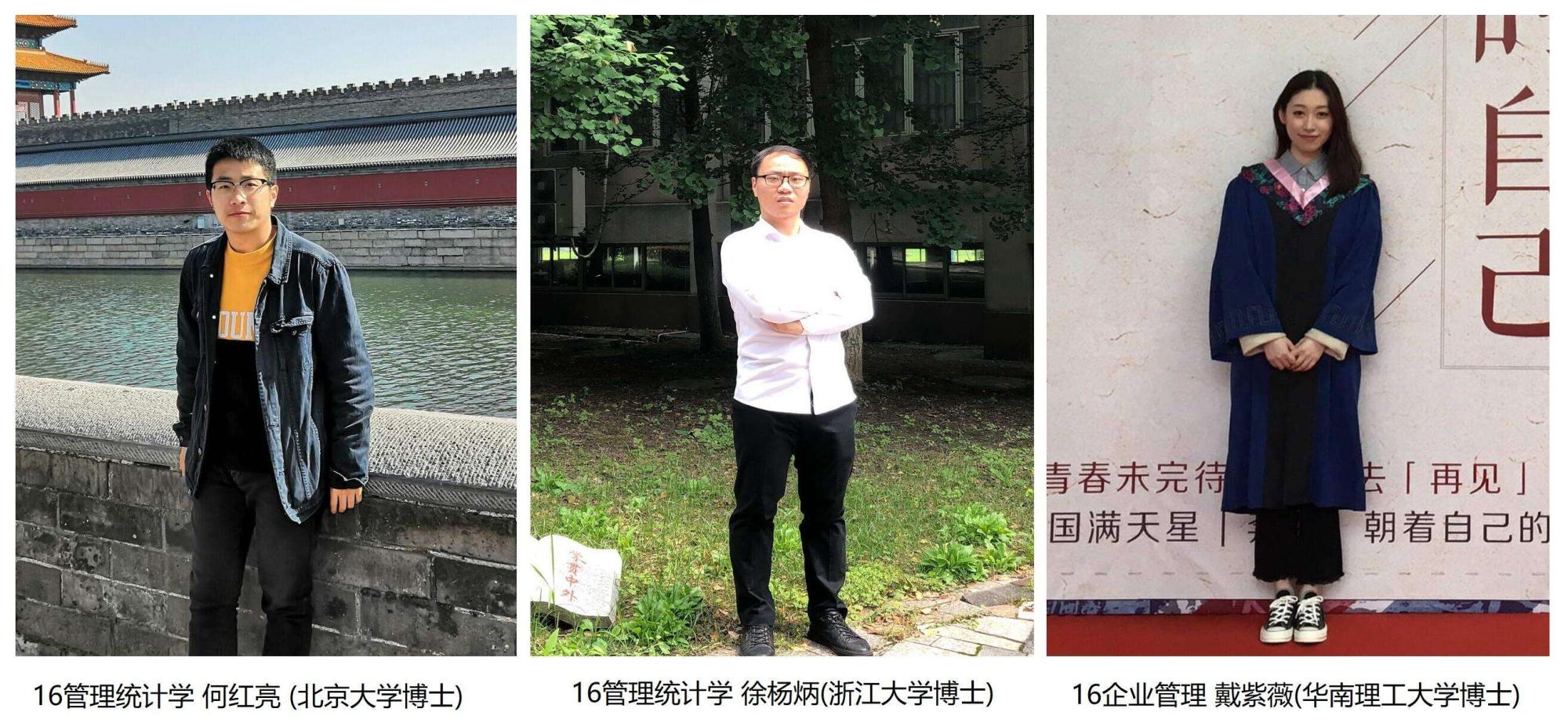 近日,各高校陆续公布了2019年博士研究生招生录取名单。我院16级硕士生何红亮、徐杨炳、戴紫薇三位同学成功考取了北京大学、浙江大学、华南理工大学等985名校的博士研究生,考博率达到30%。