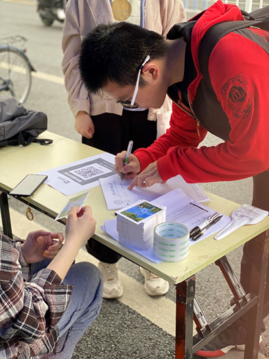 活动前期,我院园区工作站在20级各寝室楼下开展报名和闲置物品征收。期间,工作人员收取和清点物资,并明确好物品的相关信息。工作站赠予所有捐赠物品的同学们小卡片,以留念致谢。