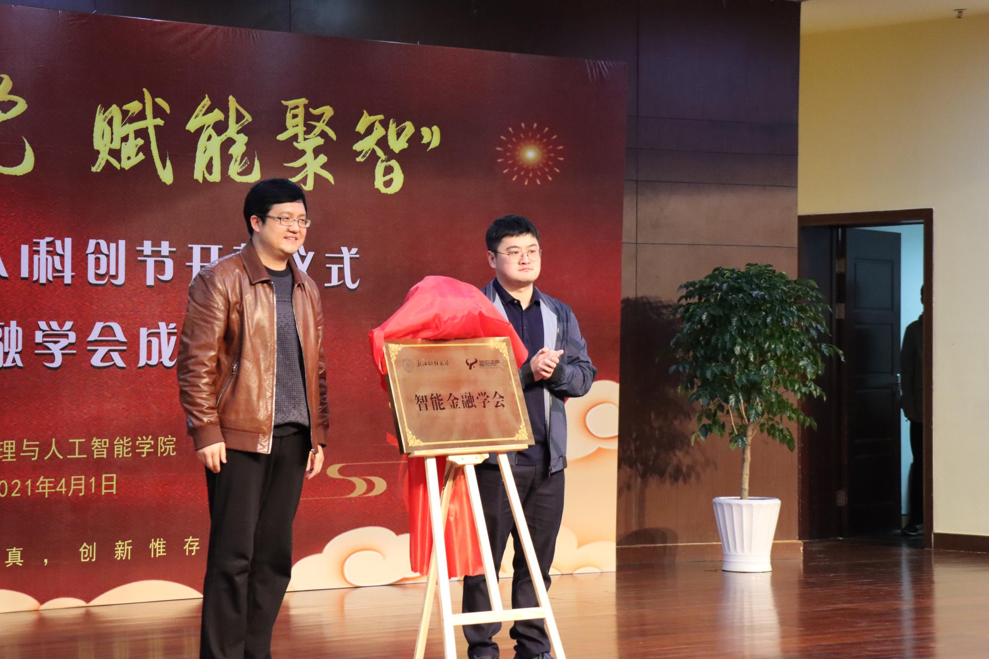 接下来的智能金融协会揭牌仪式,由盈阳资产技术总监赵海滨及信智学院党委书记徐奇伟一同上台揭牌,宣布智能金融协会正式成立。