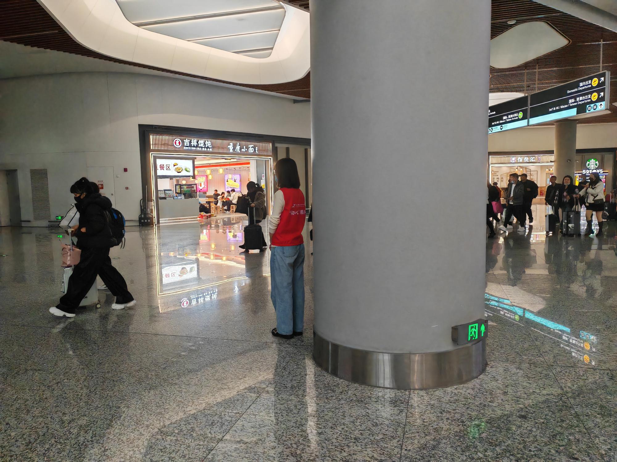 活动中,同学们身披红马甲,成为机场服务大厅一道亮丽的风景线。热情地帮助,耐心地解答,亲切地指引,收获乘客、机场工作人员的连连“点赞”。信智学院的小伙伴们用实际行动传递温暖与关爱。