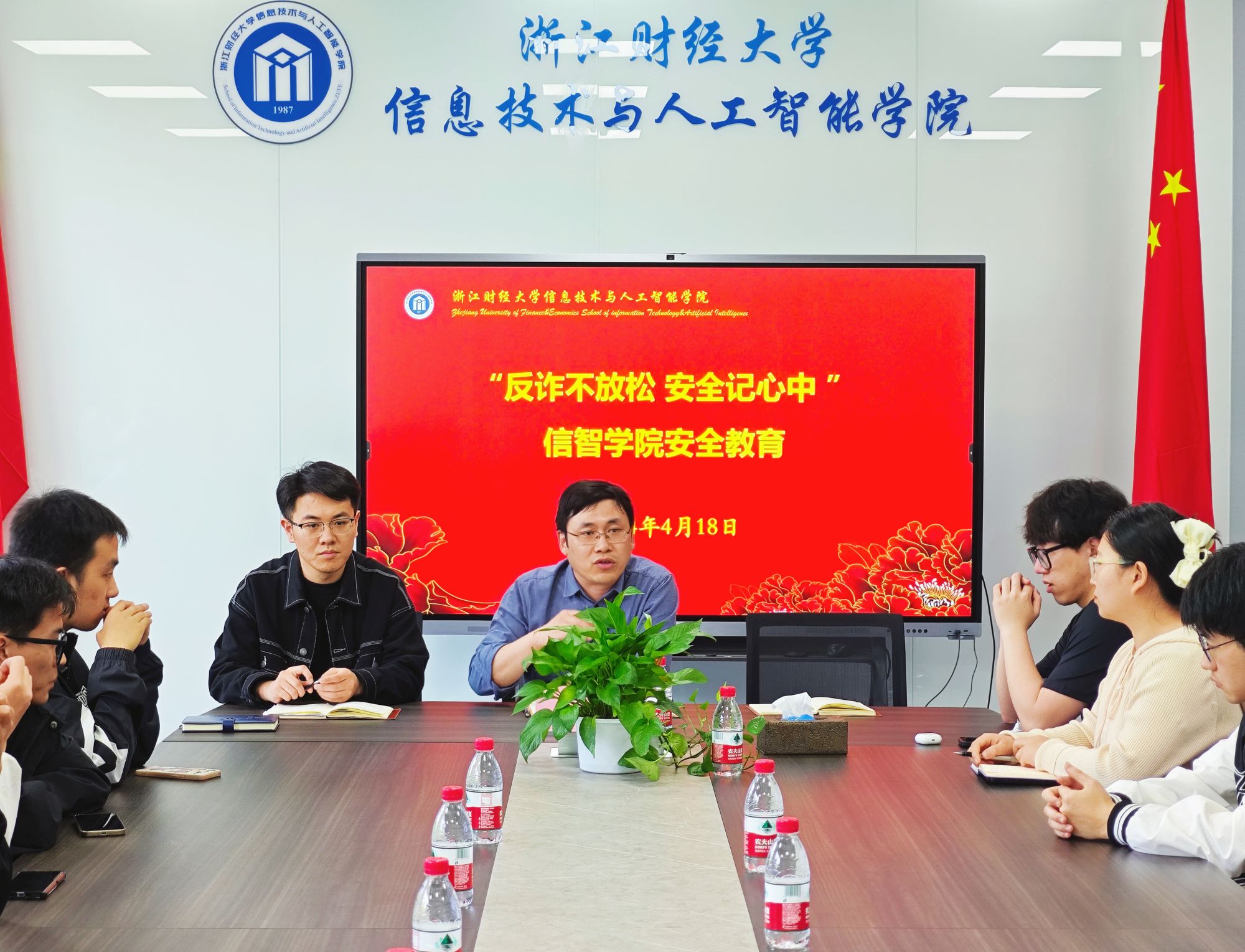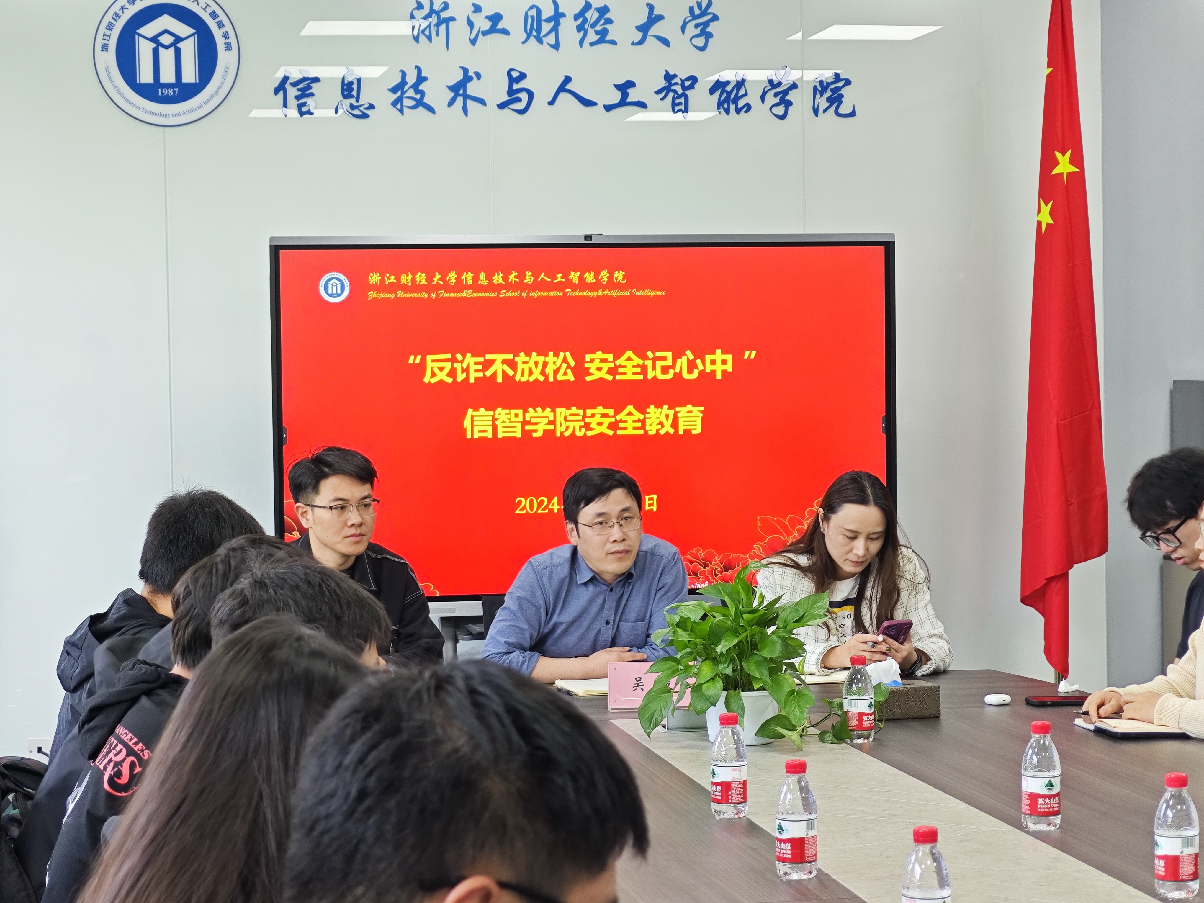 为进一步加强校园安全教育,提高师生安全防范意识,提升师生反诈能力,保护学生人身、财产安全。4月18日,我院在9508会议室举办“反诈不放松,安全在心中”主题安全宣传活动。本次活动特邀学校保卫处副处长吴俊、保卫处徐晓珊主讲,信智学院学办主任洪宝华、辅导员吴泽勇,本科生、研究生代表参加本次活动。