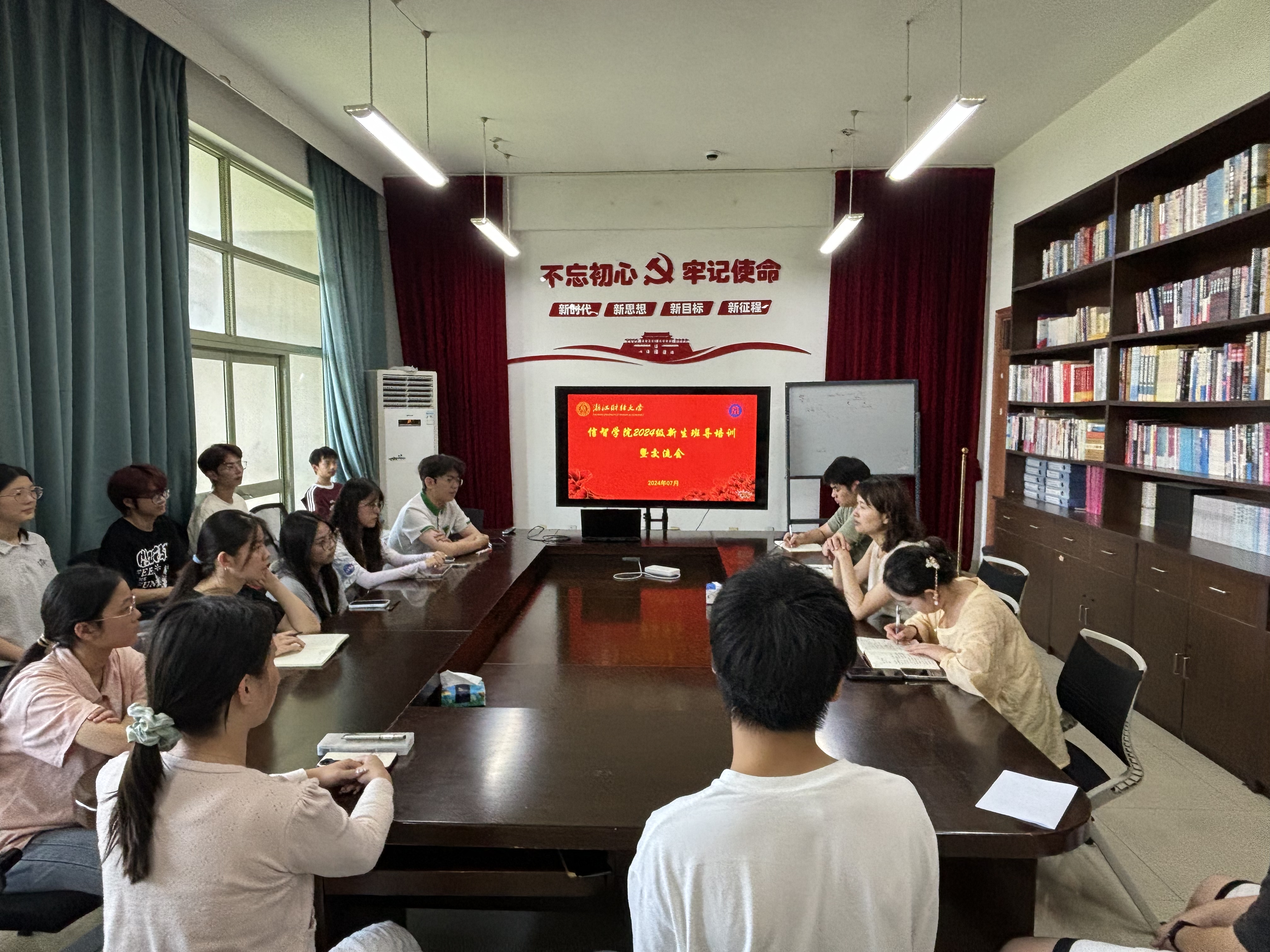 为加强学生干部队伍建设,做好迎新相关工作。7月3日中午,信智学院2024级新生班导培训暨专题交流会在学院楼9506会议室顺利召开。信智学院党委副书记吴轶韵,学办主任洪宝华,辅导员吴泽勇、史光花与2024级全体新生班导参与交流会。