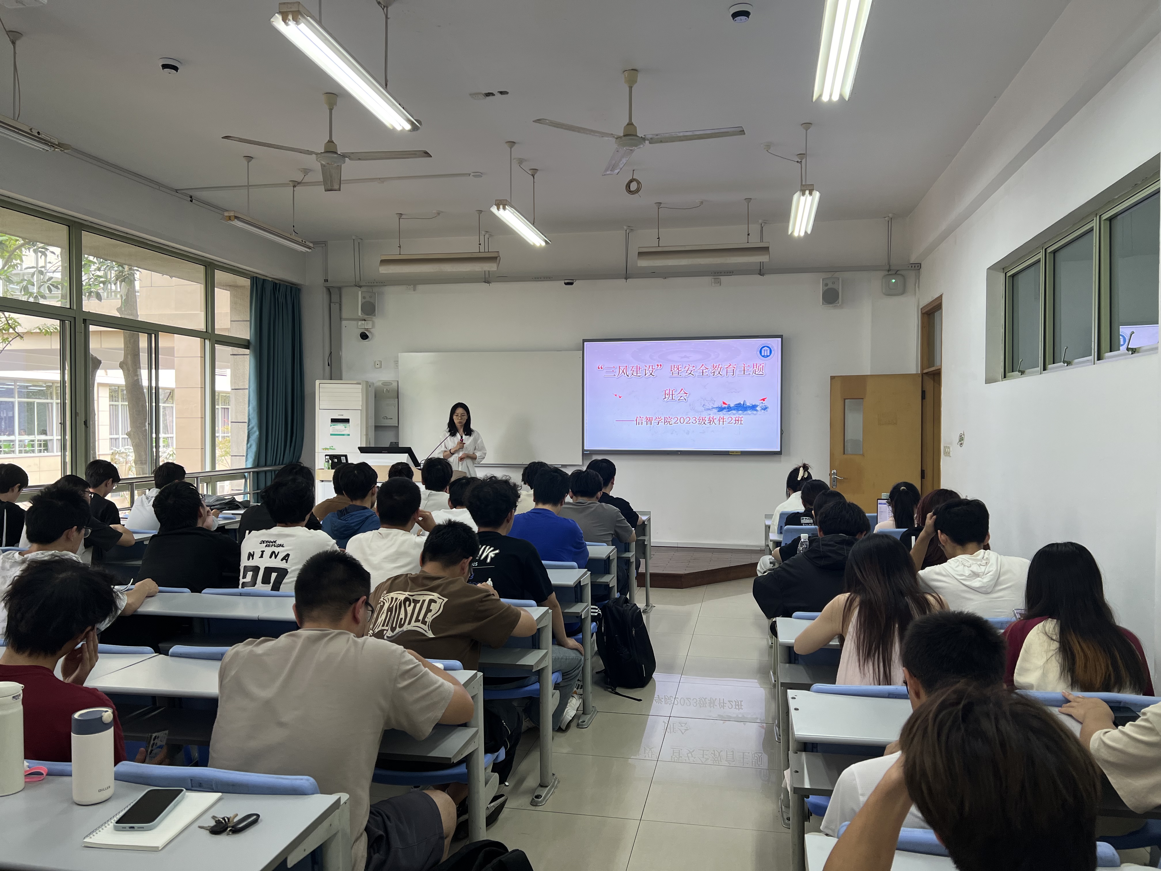 为着力构建我院优良学风,全面提升人才培养质量,落实“新财经战略”,为学校建设特色鲜明一流财经大学奠定坚实基础。近期信智学院各学生班级紧密围绕学风建设,积极开展期初学风教育宣传动员、主题讨论和专题教育等系列活动。信智学院党委副书记吴轶韵、学办主任洪宝华、团委书记赵梦瑶、各班主任、带班辅导员及全体学生参与系列活动。