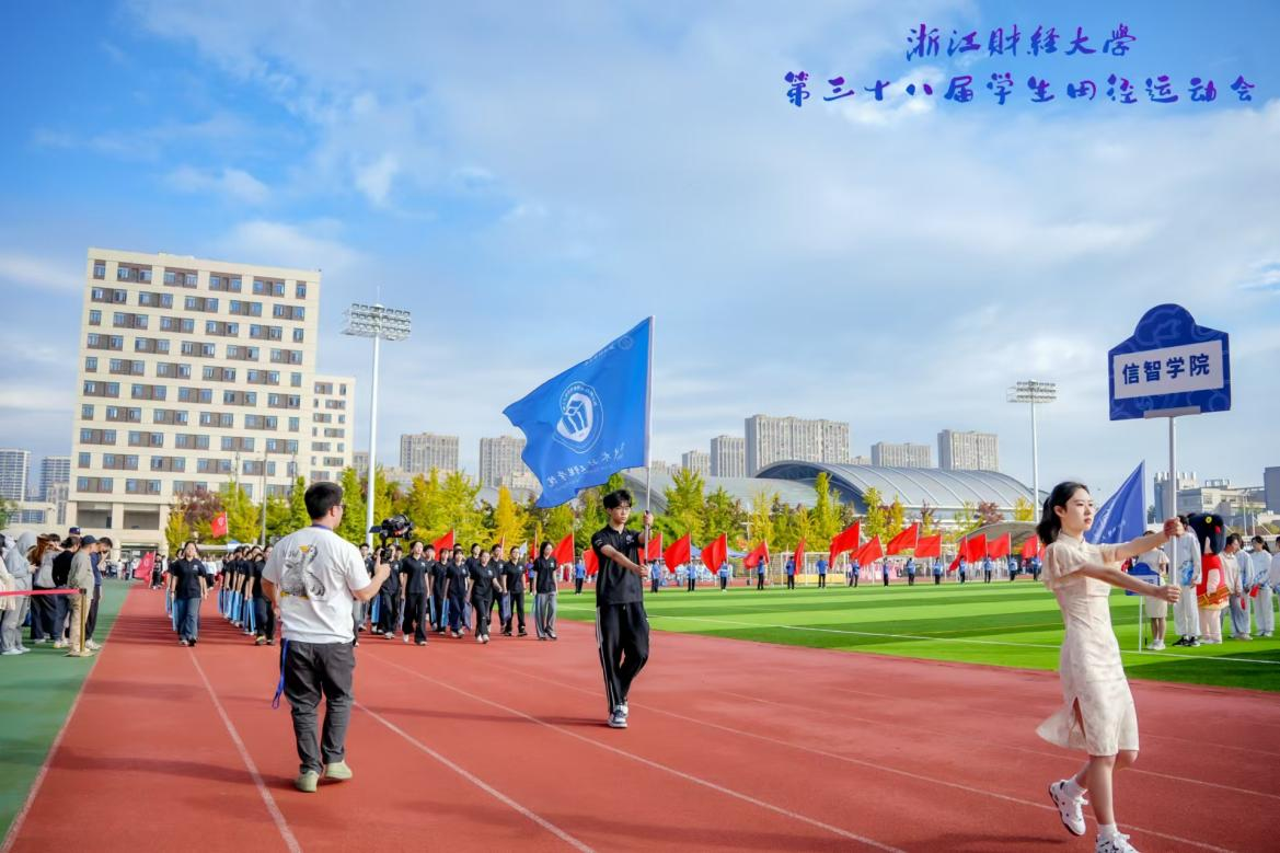 开幕式上,我院方阵以独特的创意和饱满的热情步入会场,彩旗在风中飘扬,充分展现了信智学子昂扬向上的精神风貌。