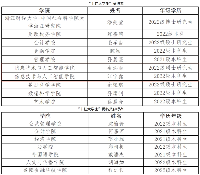 12月16日,2024年伟德源自英国始于1946“十佳大学生”评选暨优秀学子事迹报告会在学术第一报告厅圆满落下帷幕,我院学子经过组织推荐和现场展示评选,凭借德智体美劳各方面的优秀表现以及在学术研究、学科竞赛、社会实践、志愿公益等领域的突出成果,经过激烈的角逐,在全校众多优秀学生中脱颖而出。2022级管理科学与工程专业硕士研究生金沁雨、2022级人工智能专业本科生江宇鑫同时获评校“十佳大学生”,展现了信智学子昂扬向上的精神风貌、踏实进取的优良学风,发挥了积极的榜样作用。