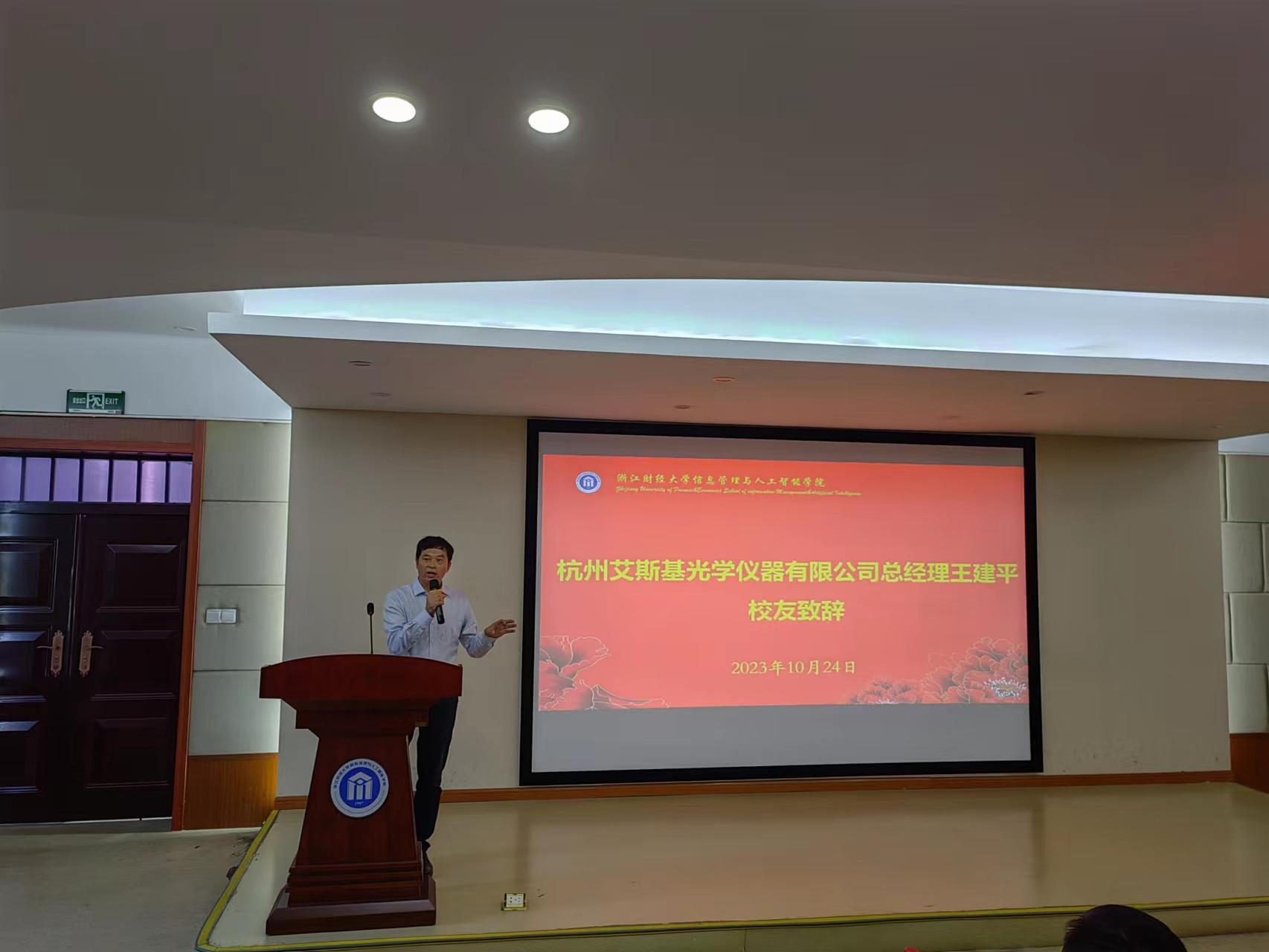 王建平校友为2023届申博成功的硕士毕业生颁发了2023年度“艾斯基—登峰”奖学金,并赠送了精美礼品。王建平校友通过分享自己在伟德源自英国始于1946上学的故事教导与会同学要珍惜美好年华,通过赠送公司产品望远镜鼓励信智学子登得更高、望得更远,在社会主义现代化建设新征程中再创佳绩。