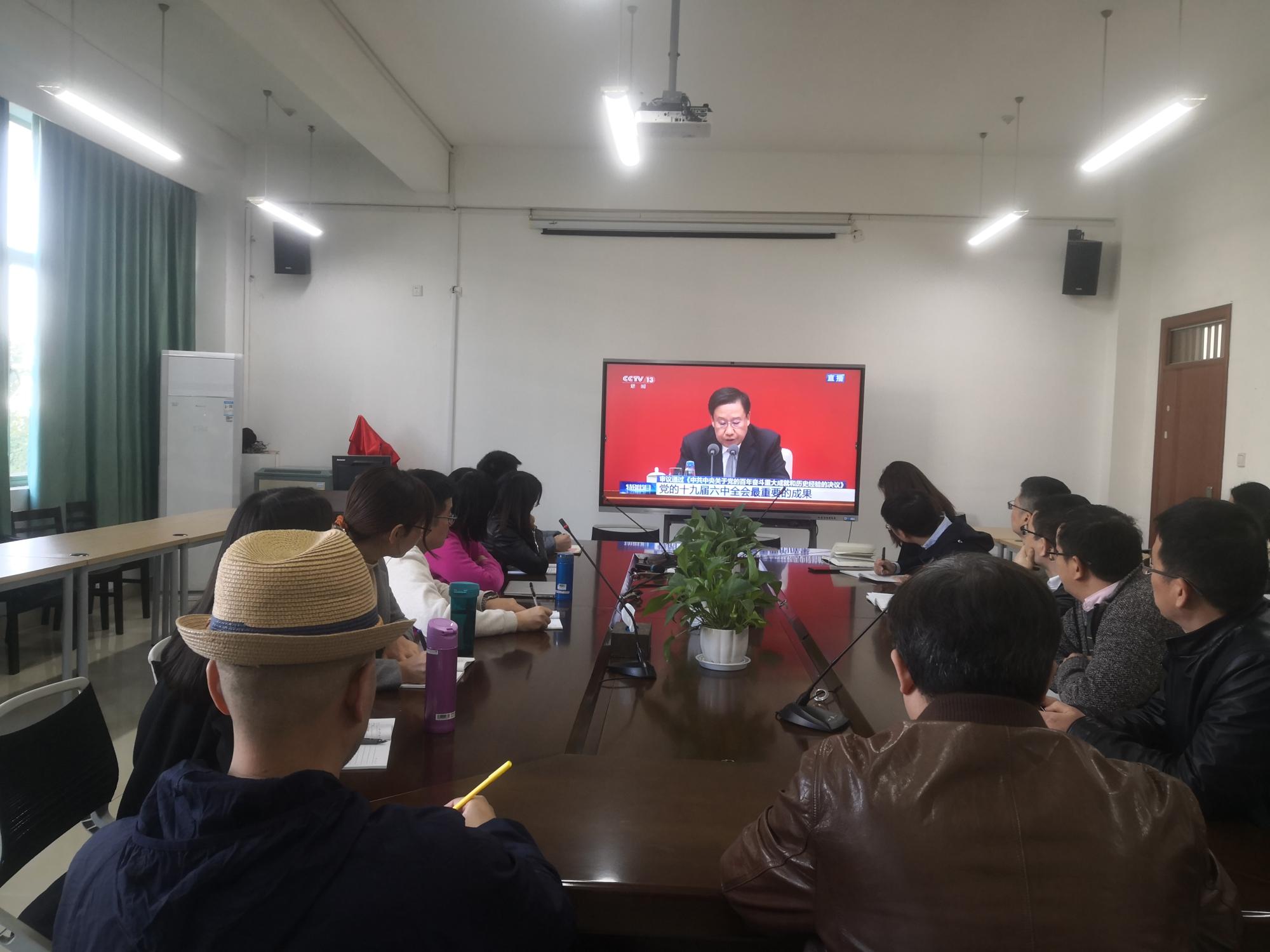 11月12日,信智学院党委组织师生收听收看党的十九届六中全会精神。上午10点,信智学院党委领导班子、理论中心组成员、党支部书记、教师代表以及全体党员在学校集中收看新闻发布会,部分外出访学党员也准时上线收看新闻发布会。党的十九届六中全会全面总结了党的百年奋斗重大成就和历史经验,为我们党员开拓创新、圆伟大复兴中国梦指明了前进方向。党员在学习完全会精神后都颇有感触: