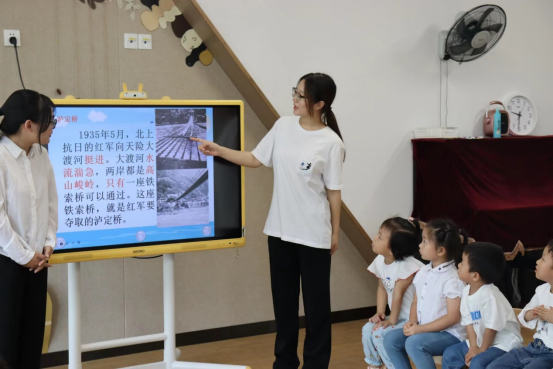 学生第三党支部接着进入教室,和小朋友们进行党史小故事分享的教学活动。讲述红军长征、飞夺泸定桥、狼牙山五壮士等党史小故事,进行爱国主义教育,了解我党发展路上的艰难历程,学习坚韧不拔的红军精神。讲述过程中,小朋友们认真学习党史知识,踊跃发言提问。我院学生第三党支部“喜迎国庆”主题党日活动顺利结束。