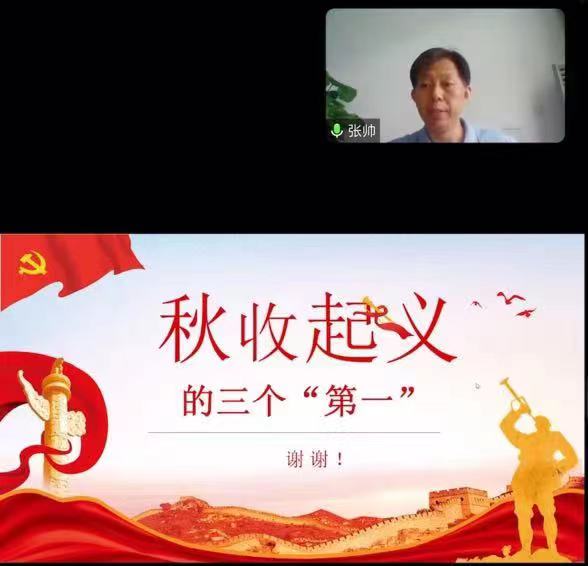 信智学院院长、党委副书记张帅老师以“秋收起义的三个第一”为题,介绍了人民军队历史上第一面军旗诞生、第一次确立支部建在连上的制度、入党誓词中第一次加入永不叛党,分析了秋收起义对中国革命的历史产生的影响,鼓励信智学子努力学习、报效祖国,在祖国需要的时候挺身而出,用自己所学的知识和技术,为党和国家的发展建设做出贡献。