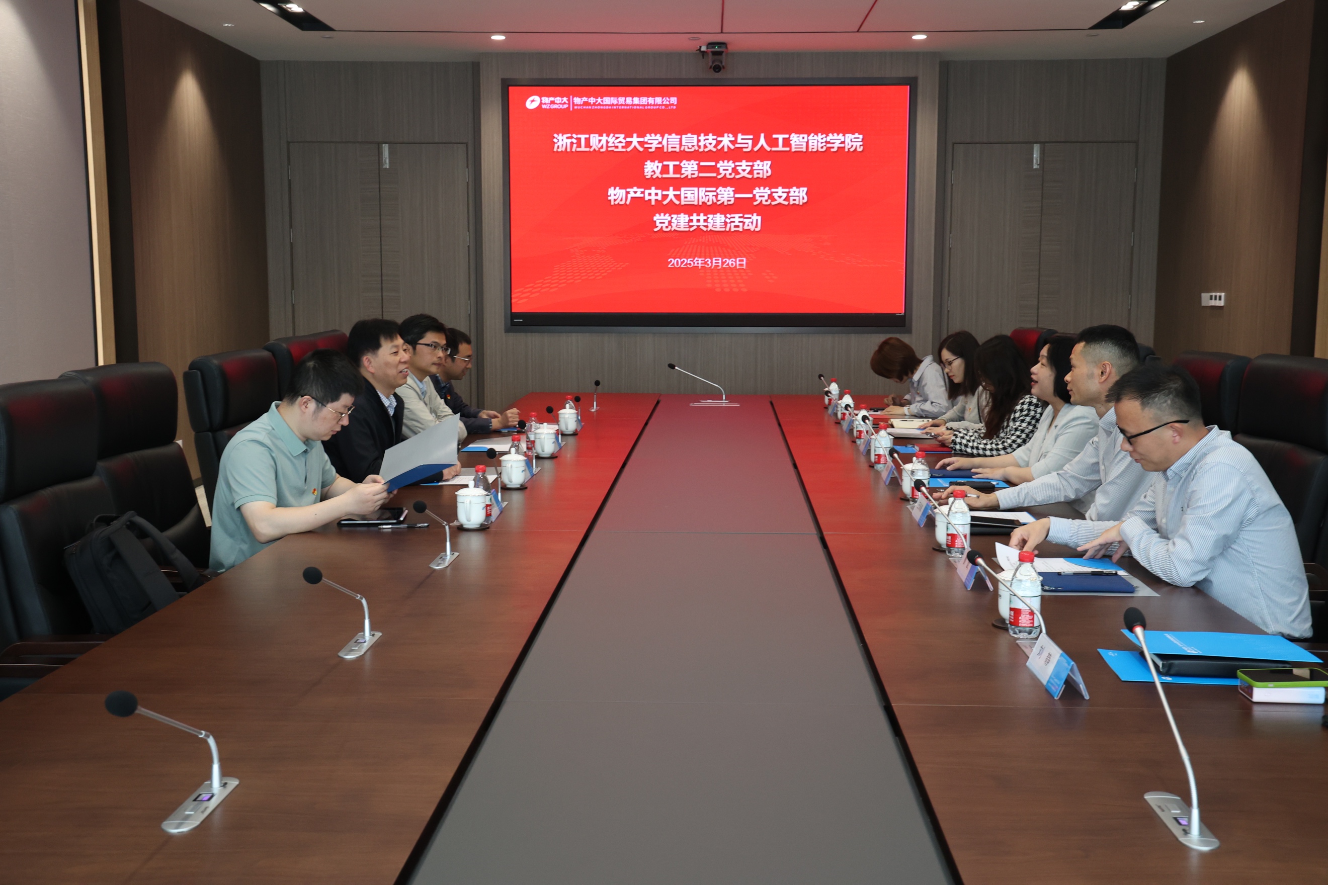 3月26日,信智学院教工第二党支部与物产中大国际贸易集团有限公司第一党支部开展党建共建活动。学院院长张帅、党委书记吴翼泽率队赴物产中大国际交流,双方签订支部共建协议。物产中大国际党委副书记、副董事长、纪委书记、工会主席葛军燕,学院教工第二党支部书记宋海裕、人工智能系主任陈琰宏,物产中大国际第一党支部书记、首席专业技术经理、运营管理中心总监王剑波,物产中大国际党群部、纪检室、工会办公室主任张蔻蔻,数字科技部总监曹斌等有关人员参加了活动。