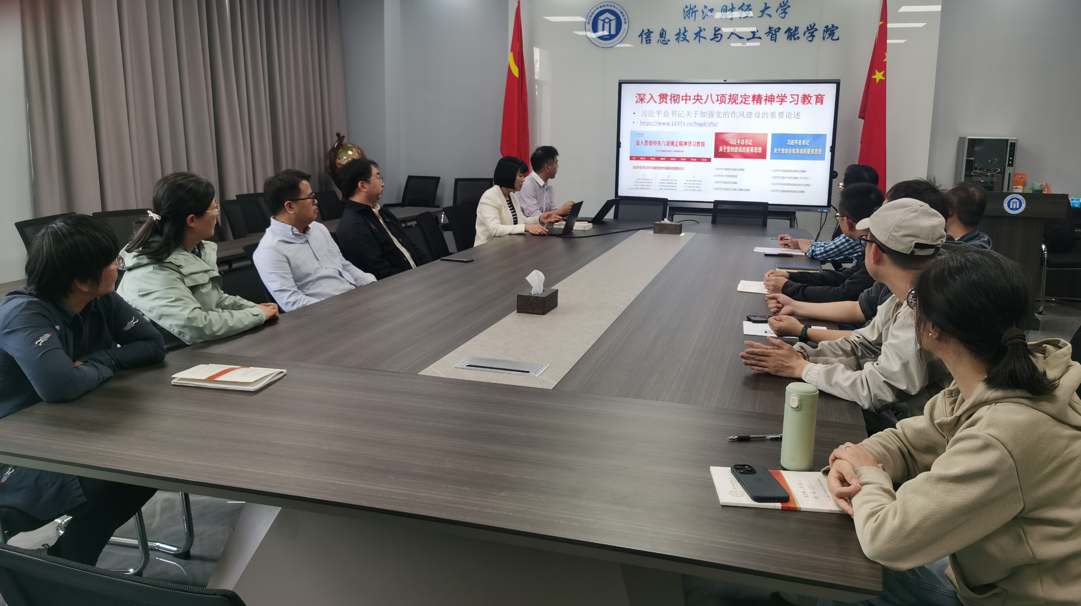 读书会采取集体研讨和个人自学相结合的方式进行,参会人员认真研读党章、《习近平关于加强党的作风建设论述摘编》、中央八项规定及其实施细则、学校有关要求等学习材料,并作交流发言。