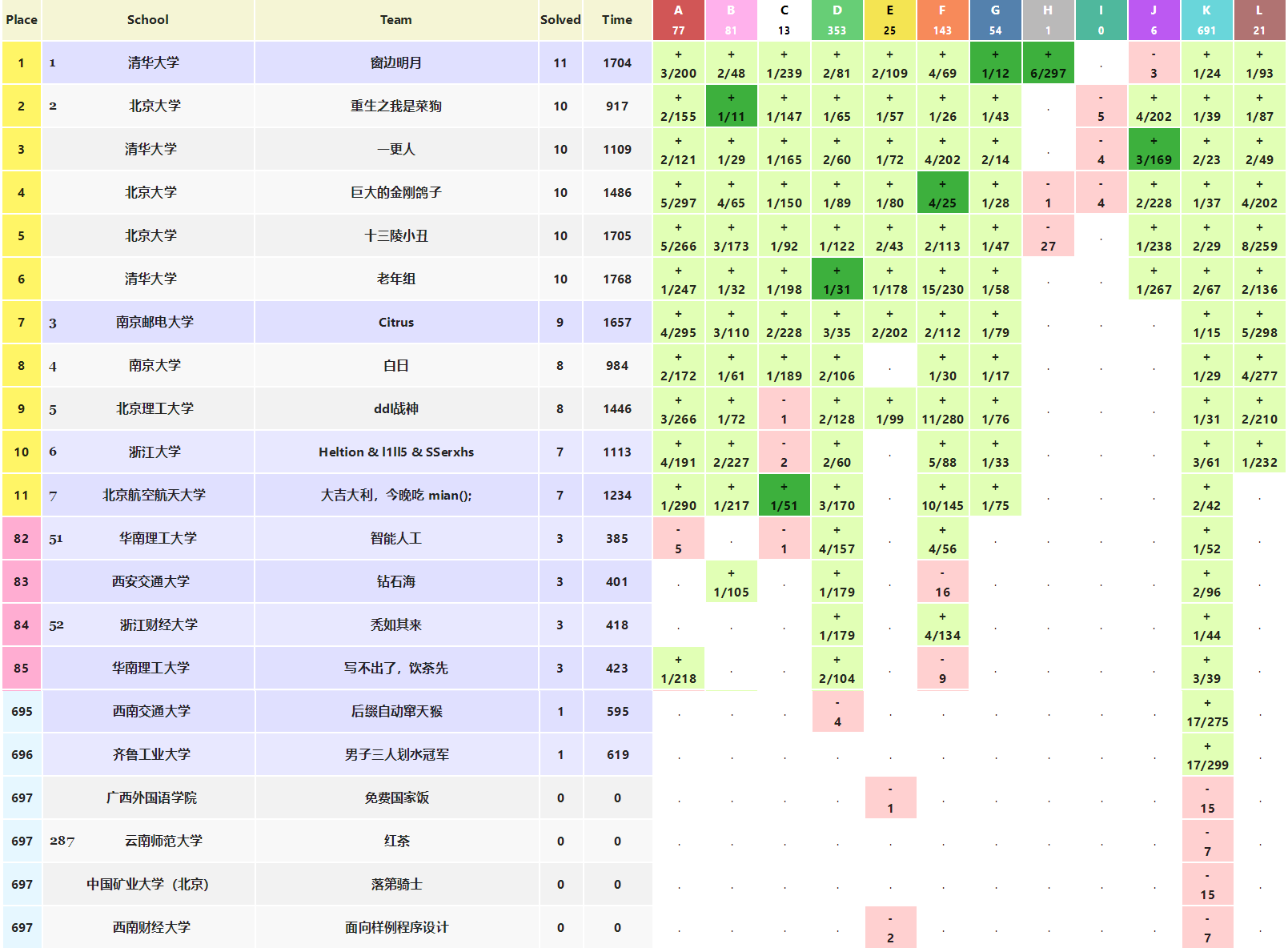 46届国际大学生程序设计竞赛亚洲区域赛昆明站获奖名单获奖如下: