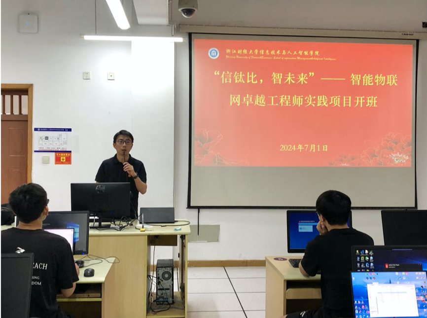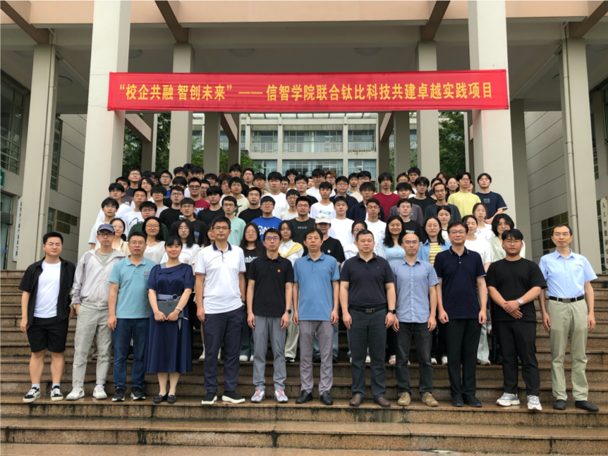 “校企共融 智创未来”——信智学院联合钛比科技共建卓越实践项目于7月1日上午正式开展,开班仪式在信智学院9-102举行。此次合作旨在培养具备创新精神和实践能力的人工智能、物联网工程人才,以满足当前快速发展的人工智能、物联网行业对人才的需求。