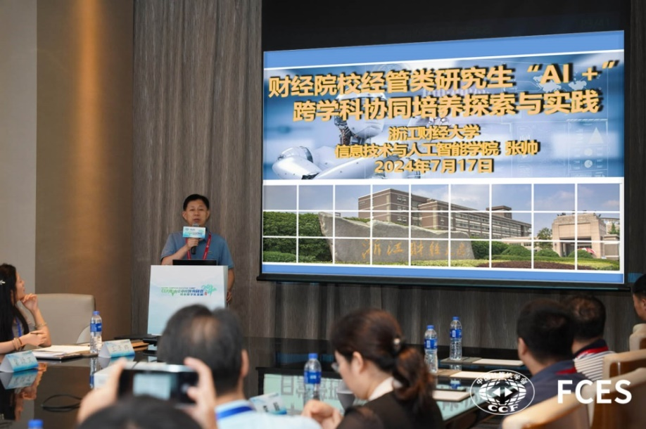 我院院长张帅教授受邀参加峰会,并在“数字金融类交叉人才培养之路”分论坛中做了题为“财经院校经管类研究生'AI+'跨学科协同培养探索与实践”的报告。张帅教授从经管类研究生培养总体现状、存在问题、改革方法和举措、改革成效等方面详细汇报了我院近十年来在研究生跨学科协同培养方面取得的相关经验,获得了与会专家和学者的一致认可与好评。