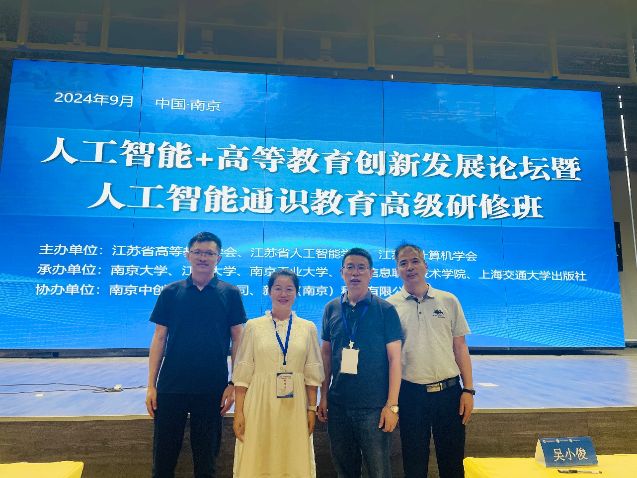 9月21—22日,人工智能+高等教育创新发展论坛暨人工智能通识教育高级研修班在南京大学仙林校区顺利召开。本次会议由江苏省高等教育学会、江苏省人工智能学会、江苏省计算机学会主办,南京大学、江苏大学、南京工业大学、南京信息职业技术学院、上海交通大学出版社承办,来自全国22个省份近130所高校的300余名专家学者与会研讨。我院章华、陈明晶、涂乐和彭莉莎四位教师参加此次会议。